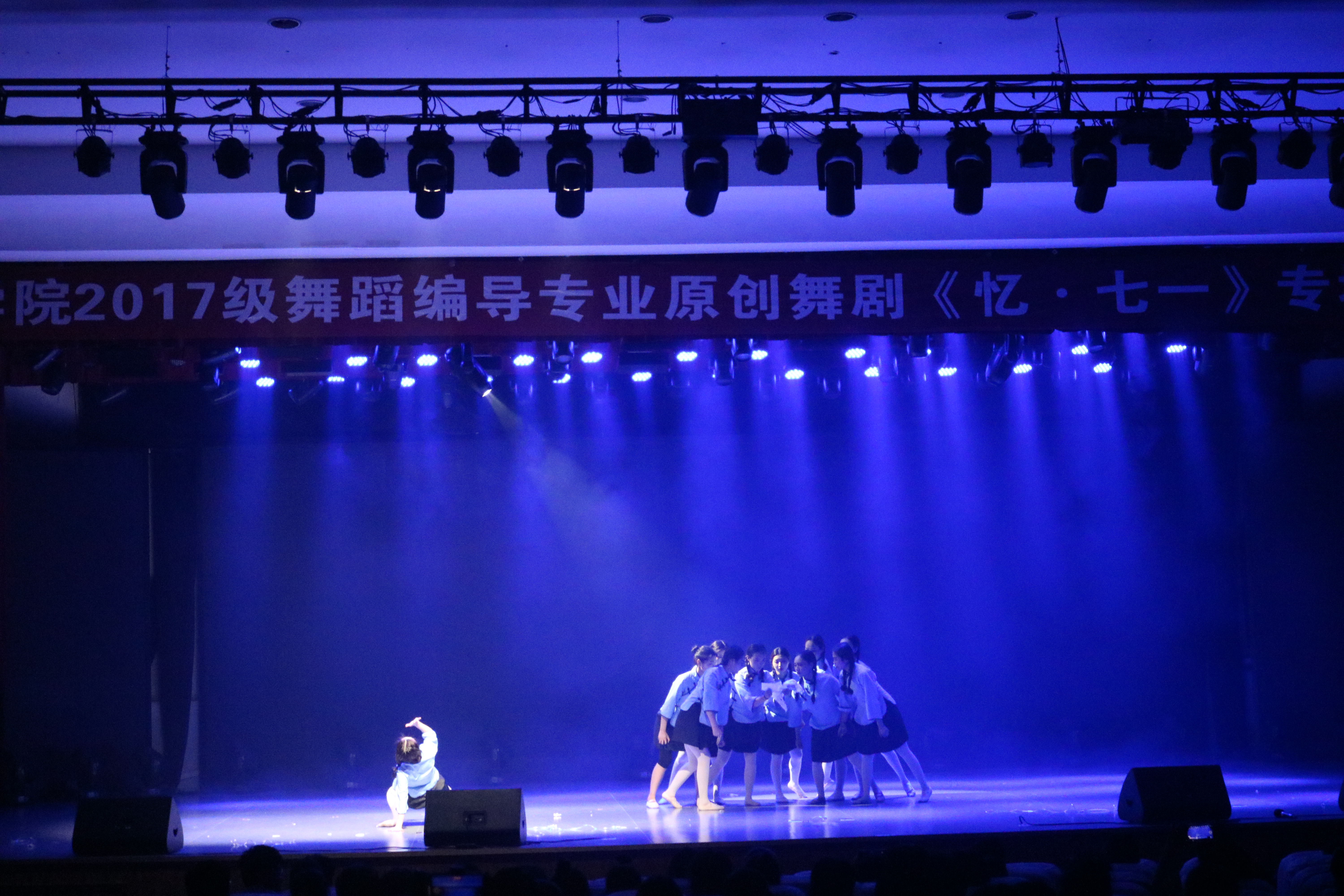 原创舞剧《忆•七一》是2017级舞蹈编导专业师生献礼建党100周年创作的作品,全剧由《缚》《创》《抗》《立》四幕构成,以中华民族内忧外患的历史为背景,以第一批中国共产党员为核心,向师生展现了激荡变幻的历史进程中风起云涌的革命思潮,中国共产党从筹备到成立并扬帆起航的过程。