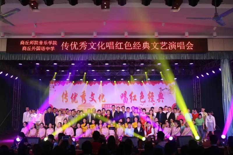 4月25日下午,太阳成集团tyc122cc红色经典音乐会在商丘市外国语礼堂举办。商丘市教育体育局党组成员、调研员杨军,商丘师范公司公司党总支书记杨新庆、经理张媛,商丘市教育台台长郝建,商丘师范公司太阳成集团tyc122cc副经理彭分田,商丘市示范区社会事务局副局长赵红梅,商丘外国语中学董事长贺玉英、副董事长马曼、政教处主任徐丽丽以及外国语中学16个班级,1000余名师生参与了本次活动。商丘市教育电视台记者进行现场报道。