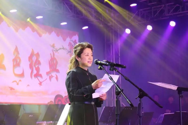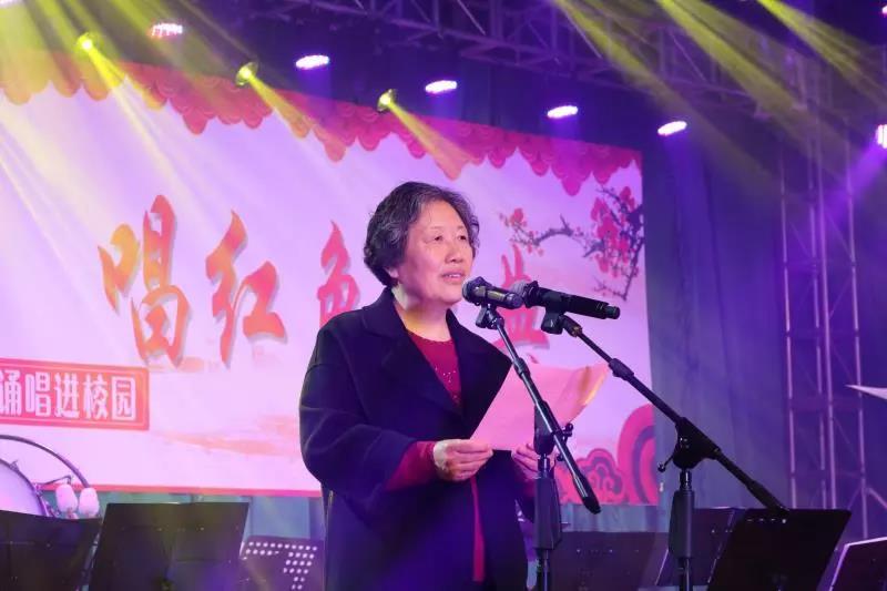商丘市外国语公司董事长贺玉英致辞,希望通过此次活动的举办,能使广大师生在享受这场音乐文化饕餮盛宴的同时,更好地审视自我,砥砺前行,努力传承红色经典,争做时代新人,为建设美丽中国而努力奋斗。