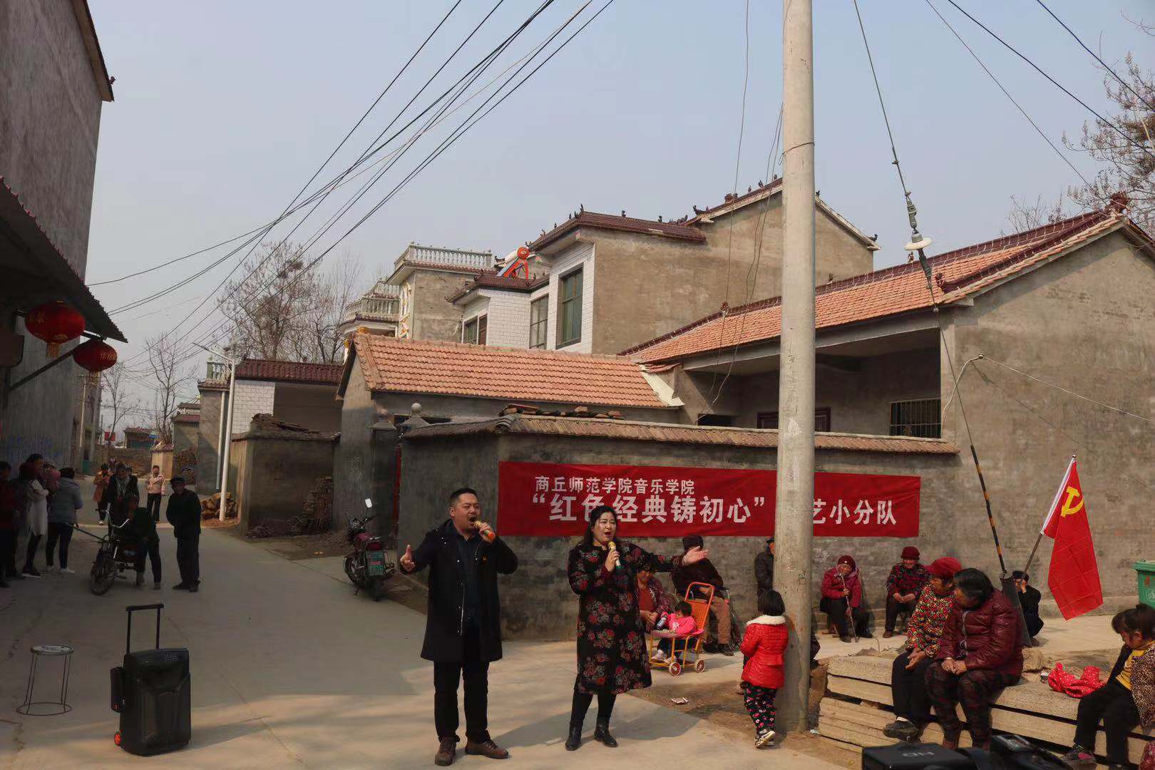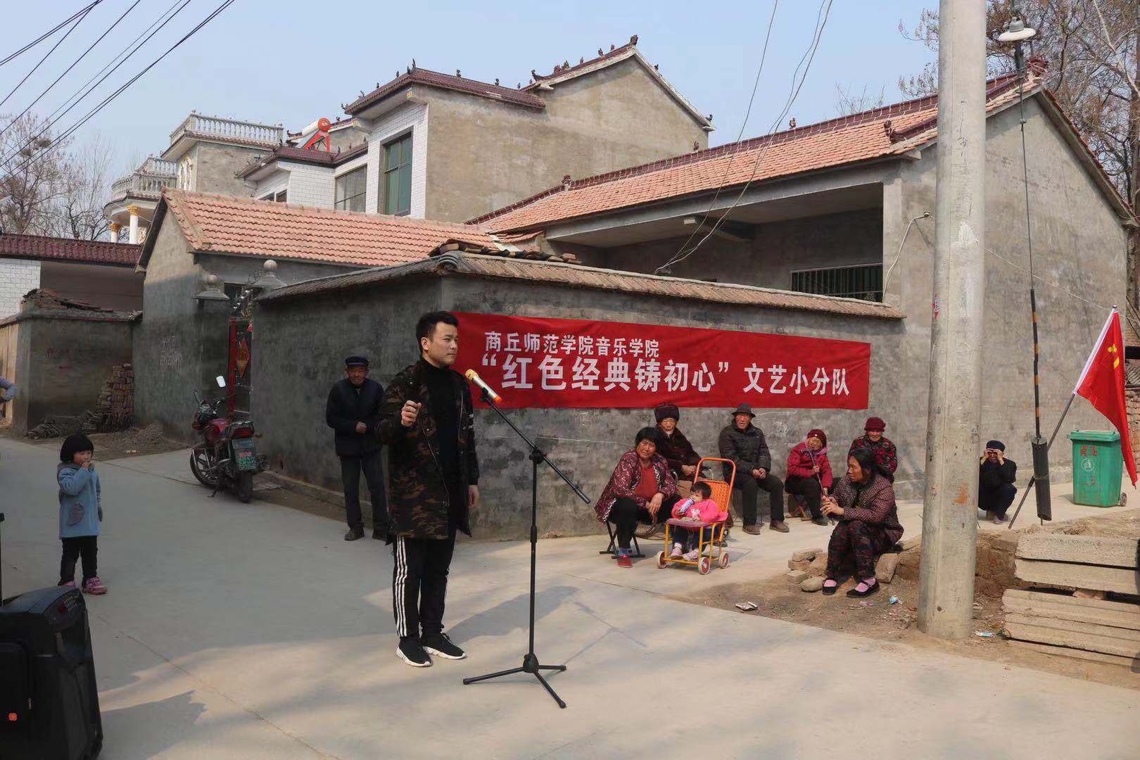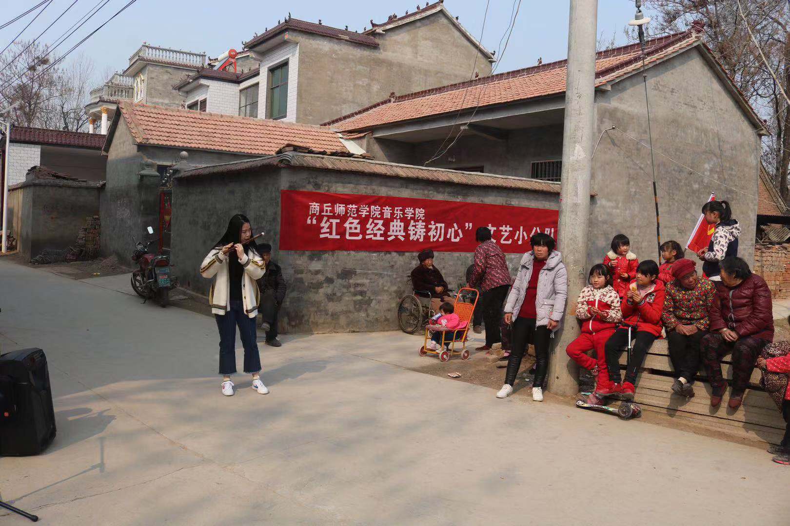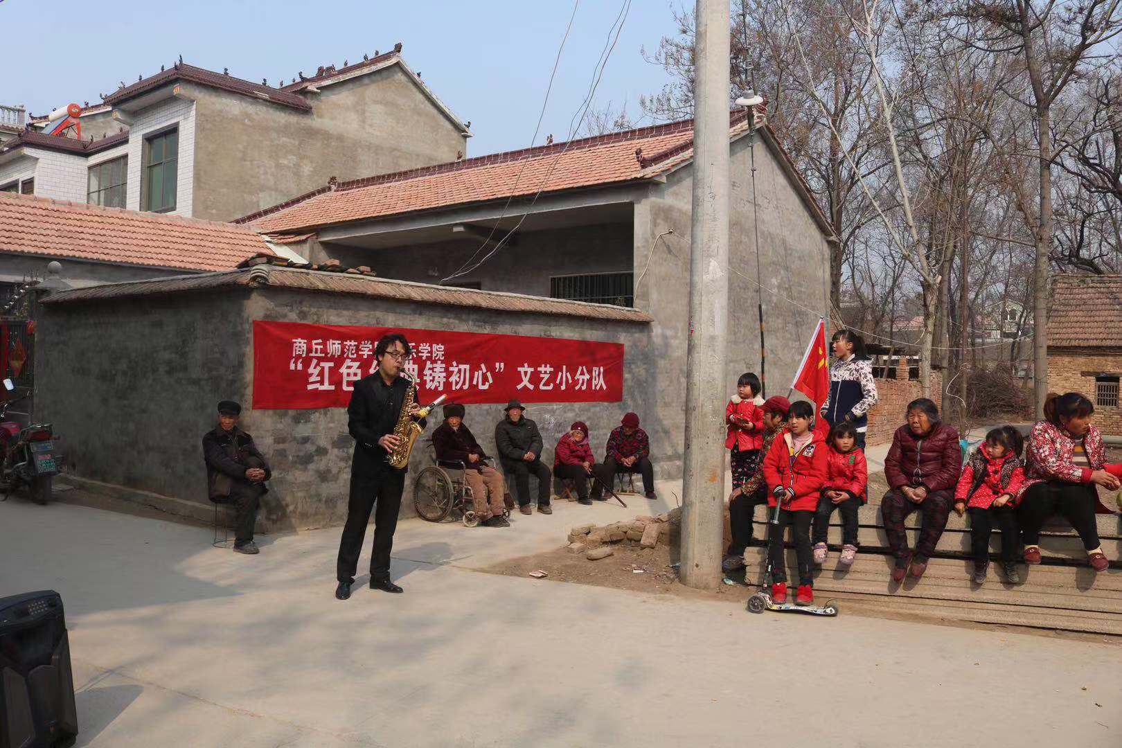 座谈后,公司“红色经典铸初心”文艺小分队进行了别开生面的演出活动。海归博士葛萌萨克斯风;鲁楠、段婷婷老师合唱;员工康丰帆笛子独奏、陈广礼豫剧选段及坠子《商丘好人颂》引起了村民阵阵掌声。