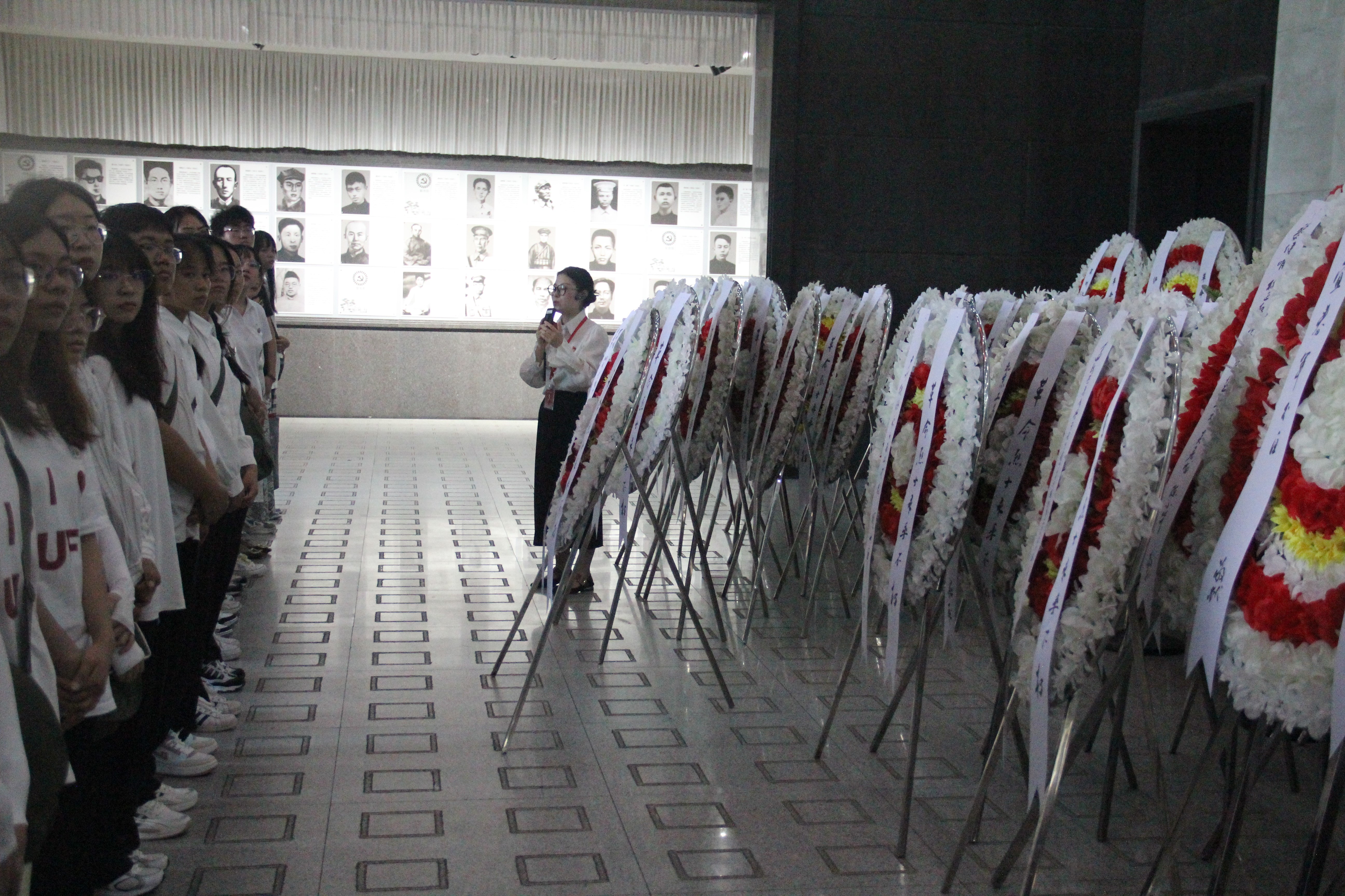 井冈山革命烈士陵园,不仅是历史的见证,更是对革命先烈们永恒的纪念。实践团成员沿着109级台阶拾级而上,向烈士英灵敬献花圈,鞠躬默哀,追忆革命烈士为国捐躯的壮烈事迹。在吊唁大厅,基地教研处教师王云霞深情地讲述了那段血雨腥风的井冈山斗争史,向同学们介绍了四周墙面嵌刻的壮烈牺牲的15744位烈士英名录和大厅中央厚重的汉白玉无字碑承载着后人对无名烈士的深切怀念。在纪念堂门口,实践团成员面对鲜红的团旗重温入党誓词,精神再一次受到洗礼,铿锵有力的宣誓声展现出同学们更加坚定拥护党、拥护团的决心。