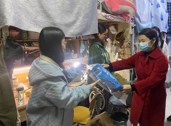 彭分田、张媛为部分同学送上厚衣物御寒,将温暖送到实处。