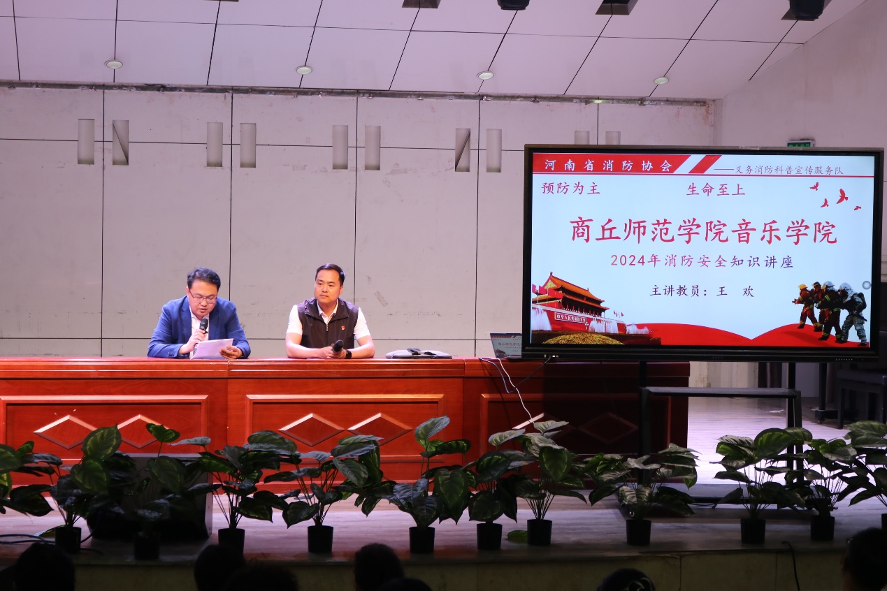 为认真学习贯彻习近平总书记关于安全生产、应急管理、防灾减灾救灾的重要论述,进一步强化公司消防安全管理,提高广大师生的消防安全意识和防火救灾逃生能力,确保公司安全稳定,开展消防知识培训讲座和消防疏散演练活动,太阳成集团tyc122cc于4月19日下午在音乐厅开展消防安全知识培训。此次活动由党委副书记张瑞主持,邀请了河南省消防协会教员王欢宣讲,全体教师及员工代表参加此次培训。