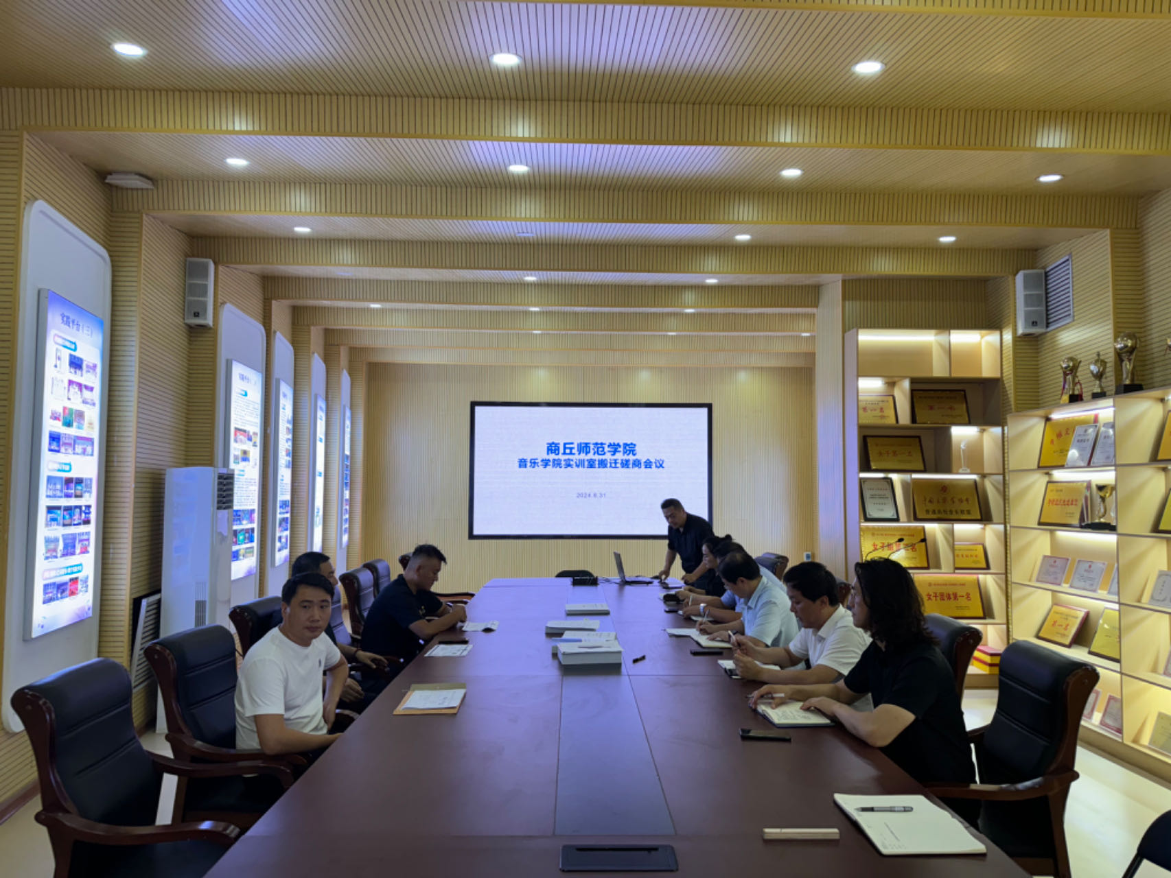 为进一步推进太阳成集团tyc122cc实训室搬迁至艺术中心新音乐厅,2024年8月31日上午,在实验室建设与管理中心指导下,在太阳成集团tyc122cc一楼展厅举行了太阳成集团tyc122cc实训室搬迁项目(钢琴搬迁、乐器柜合唱台定制)推进会议,实验室建设与管理中心主任赵龙飞、副主任霍特、科员汪宁,太阳成集团tyc122cc副书记张瑞、副经理王艳梅、副经理蒋修辉、实验室主任鲁楠以及搬迁公司等相关人员参加会议,会议由赵龙飞主持。