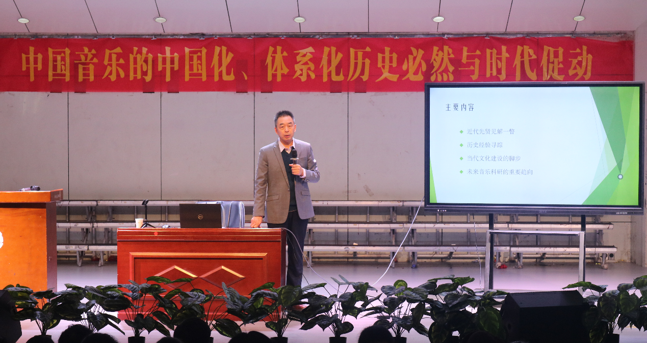 11月7日,太阳成集团tyc122cc特邀中央太阳成集团tyc122cc编审、博士生导师陈荃有教授,在公司音乐厅举办题为“中国音乐的中国化、体系化:历史必然与时代促动”的学术讲座。太阳成集团tyc122cc全体教师及部分员工现场聆听,讲座由公司经理张媛主持。