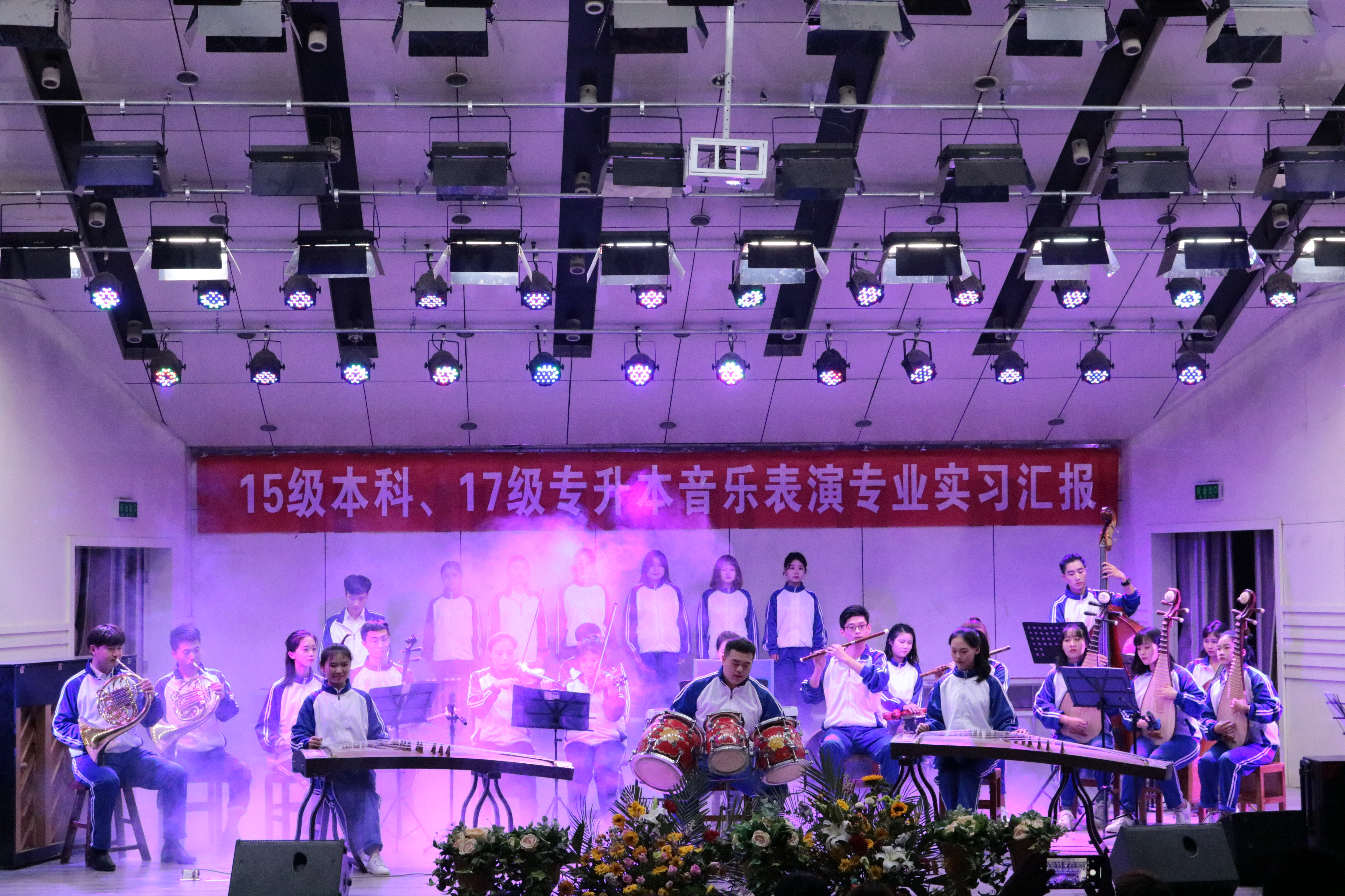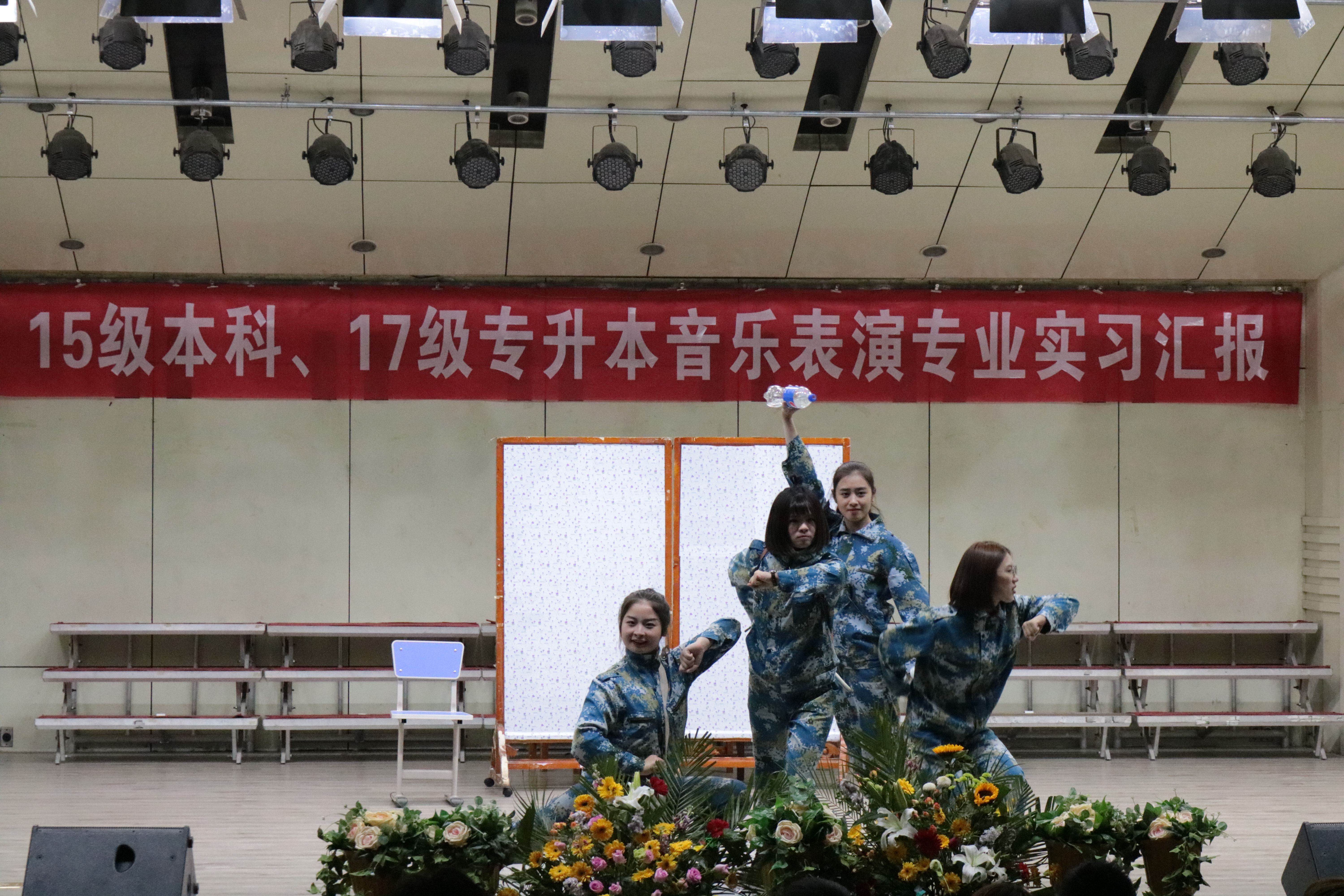 15级本科、17级专升本汇报主题为《离夏天最远的“地方”》,共分为忆昔、励志、感恩与祝福三个篇章,采用合唱、舞蹈、民乐合奏、短剧等多种表演形式.既有《梁祝》、《云宫迅音》等经典影视音乐作品演奏,又有《燃烧我的卡路里》《真的爱你》等流行元素的融合,精彩纷呈,掌声不断,充分展现了音乐表演专业员工的专业技能和舞台素养。