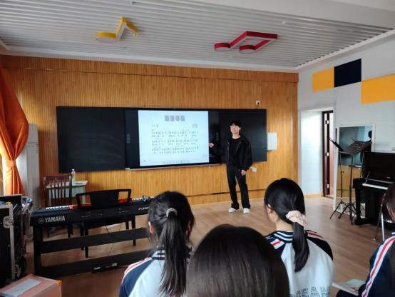 第一小组坊员赵珂莹和樊怙泽分别在高二 15 班、 16 班教授歌唱 课《凤阳花鼓》和《踏雪寻梅》,两节课的课堂氛围活跃,员工们都 能够积极参与到教学过程中。通过《凤阳花鼓》的学习,同学们能够深入学习中华优秀传统文化,以及凤阳花鼓中的花鼓戏和衬词;通过《踏雪寻梅》的学习,同学们了解了中国音乐一代宗师——黄自作曲的经典合唱歌曲,感受到歌曲对梅花的赞美和喜爱之情。