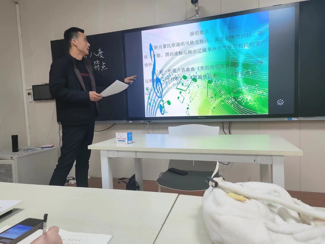 首先,观摩了陈辉老师的微型课《草原上升起不落的太阳》,这节课从创作背景、聆听音乐、分析学习乐曲几个方面开展,并对蒙古族舞蹈进行拓展。课堂设计丰富有趣,让坊员们受益良多。