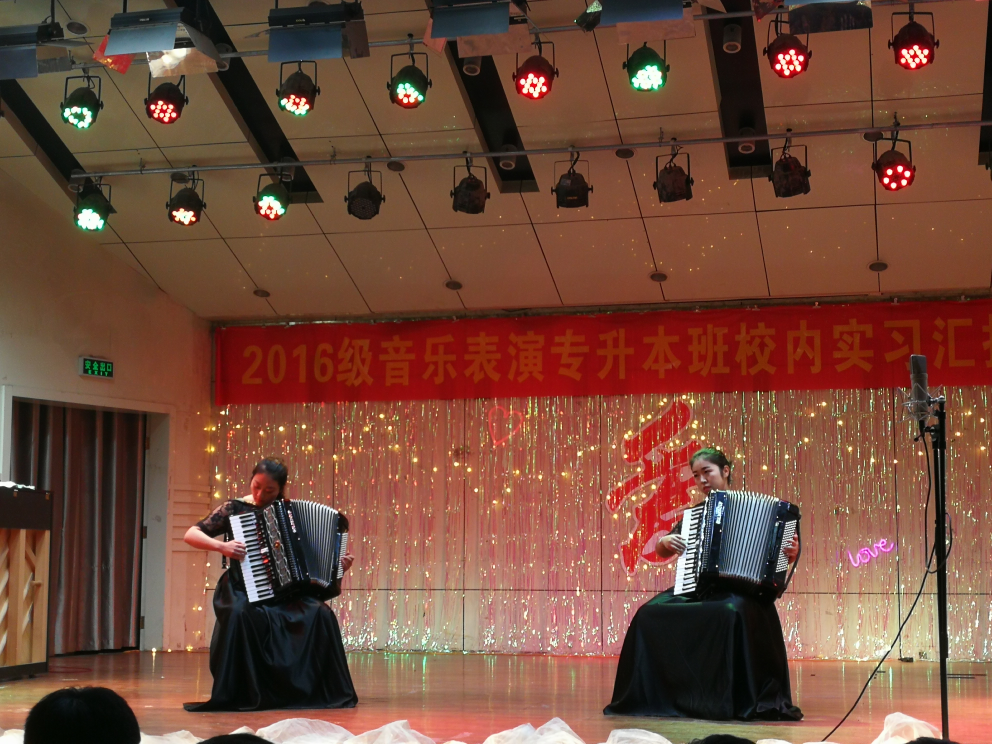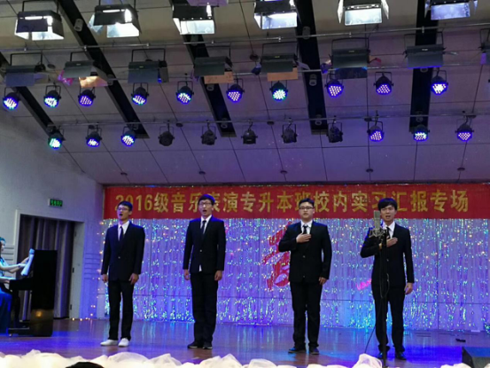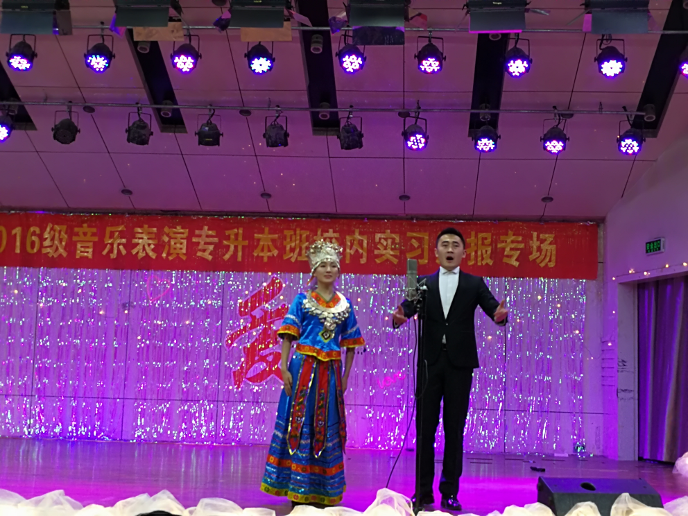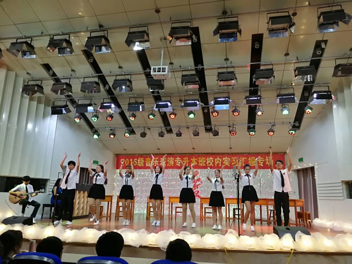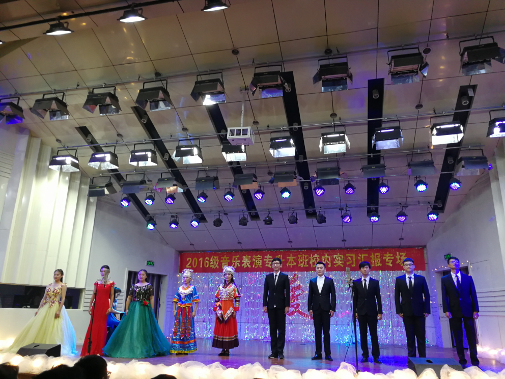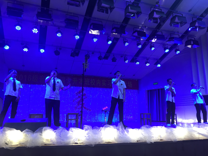 2017年10月,根据公司规划,公司举行2014级各专业及2016级音乐表演专升本校内实习周。10月10日,2016级音乐表演专升本在任铭月、周加海2位老师的指导下,举行以“爱”为主题的校内实习汇报晚会。晚会自编自导自演,形式多样,内容丰富多彩,高潮迭起,掌声不断,一专多能充分体现,公司转型发展教学实践改革成效初显。