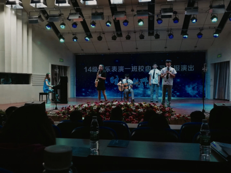 2017年10月,根据公司规划,公司举行2014级各专业及2016级音乐表演专升本校内实习周。10月11日晚,2014级音乐表演一班在段婷婷、王晓羽2位老师的指导下,举行以“时间都去哪儿了”为主题的校内实习汇报晚会。汇报合唱、舞蹈、民乐合奏、小品、表演唱等形式多样,内容丰富多彩,一曲大合唱《时间都去哪儿了》将晚会推向高潮。晚会由同学们自导自演,充分体现公司复合型人才培养成果,公司转型发展教学实践改革成效初显。