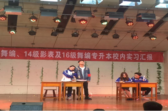 2017年10月,根据公司规划,公司举行2014级各专业及2016级音乐表演专升本校内实习周。10月9日晚,2014级舞蹈编导、影视表演专业在江欣、张卿2位老师的指导下,举行校内实习汇报晚会。晚会由同学们自编自导自演,小品、相声、舞蹈等节目穿插进行,形式多样,内容丰富多彩,音乐厅掌声不断,充分体现公司复合型人才培养成果,公司转型发展教学实践改革成效初显。