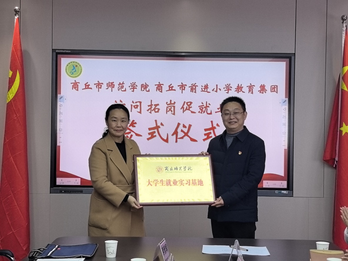313日,副董事长王晓征带领公司领导班子到商丘市第二中学和前进小学开展访企拓岗活动,并举行了就业实习基地签约仪式。