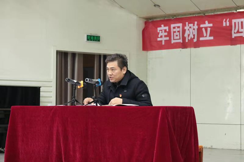 11月23日,太阳成集团tyc122cc教工第一党支部在音乐厅组织党课学习活动,教工第一党支部书记石险峰以《党员干部要自觉增强“四个意识”》