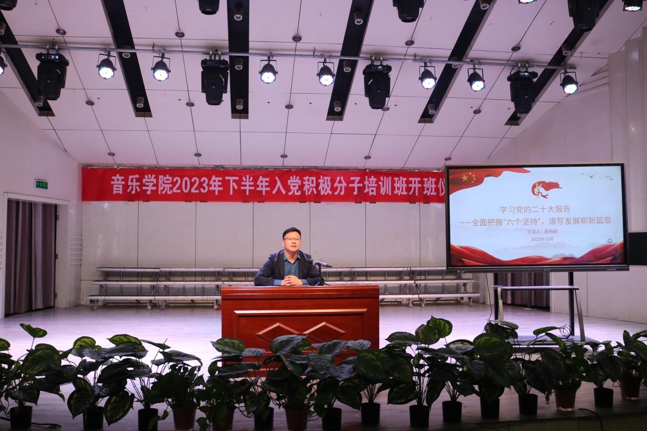 开班仪式结束后,彭分田为入党积极分子讲授《全面把握“六个坚持” 谱写发展崭新篇章》党课。