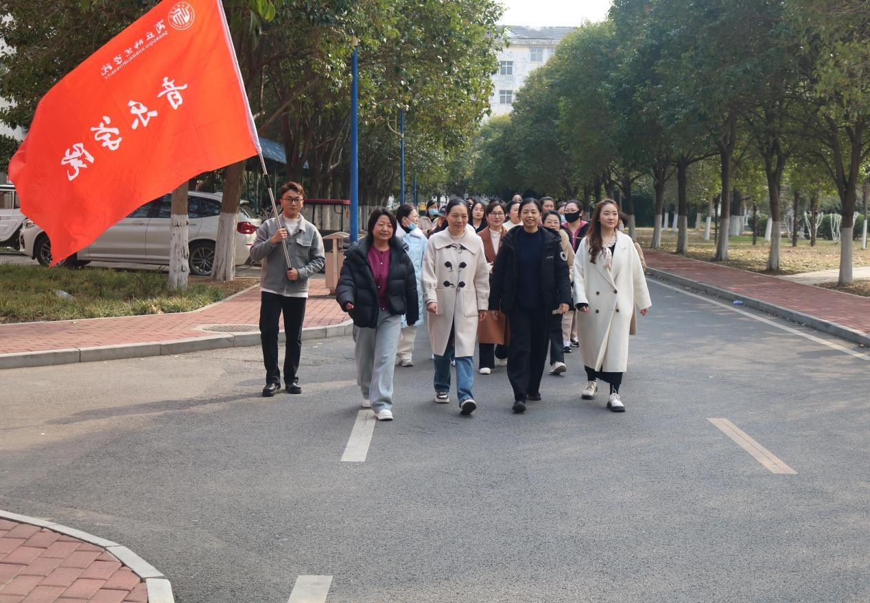 此次健步走活动展现了太阳成集团tyc122cc女教职工们精神抖擞的风貌,她们步伐矫健,沿着公司文秀山、夏梦湖、秋韵湖阔步前行。大家一边欣赏着沿途的春色,一边畅谈着工作生活,欢声笑语回荡在校园中。