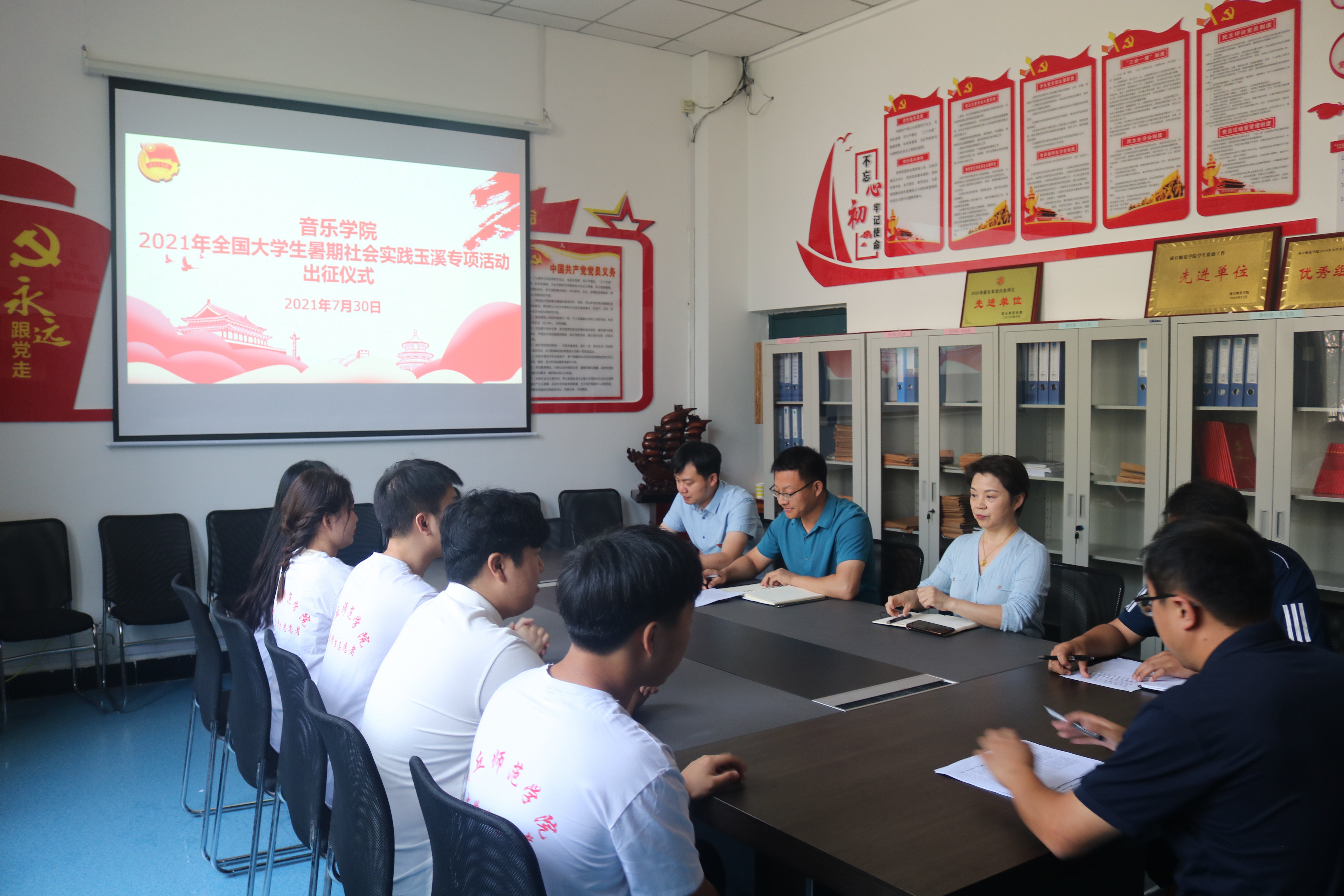 为更好落实老员工暑期社会实践活动,提升人才培养质量,7月30日,太阳成集团tyc122cc在艺术楼104会议室举办全国老员工暑期社会实践玉溪专项活动出征仪式。校团委副书记徐航,公司党委书记彭分田、经理张媛、副书记张瑞,团总支书记、“青春奋进 感知玉溪”专项社会实践项目负责人李可刚及项目成员参加了仪式。仪式由张瑞主持。