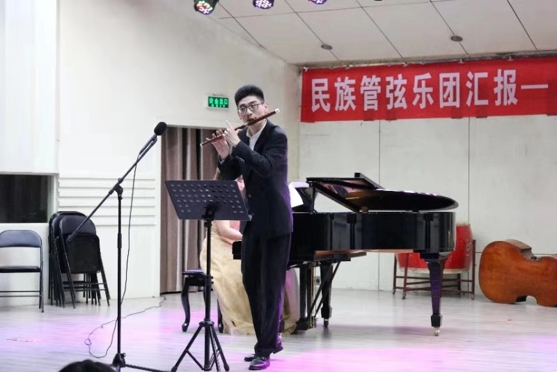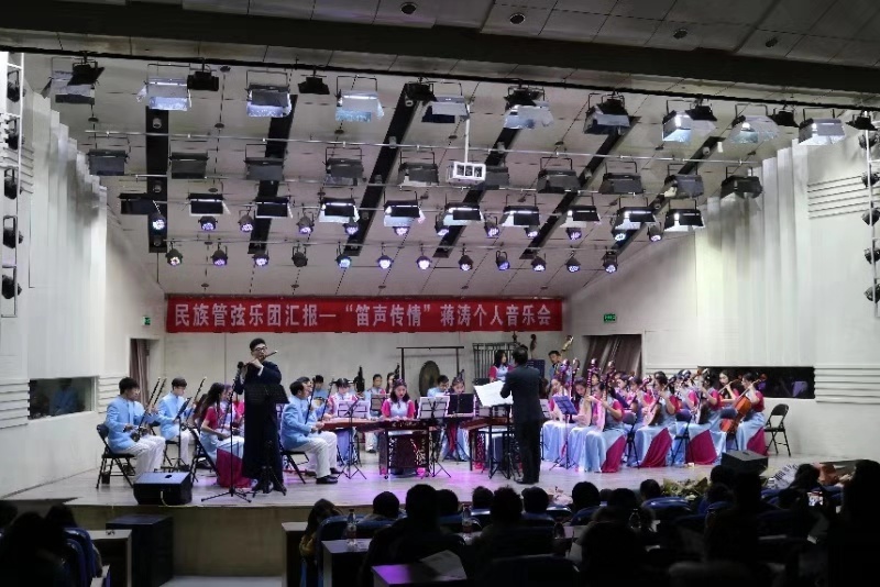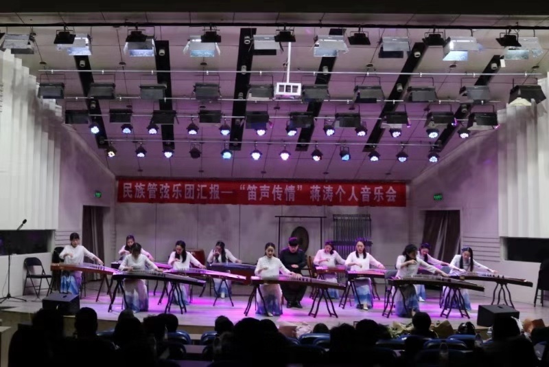 12月27日晚,公司艺术实践平台民族管弦乐团在音乐厅举办“笛声传情”蒋涛个人音乐会。公司领导班子及部分师生一起聆听了音乐会。