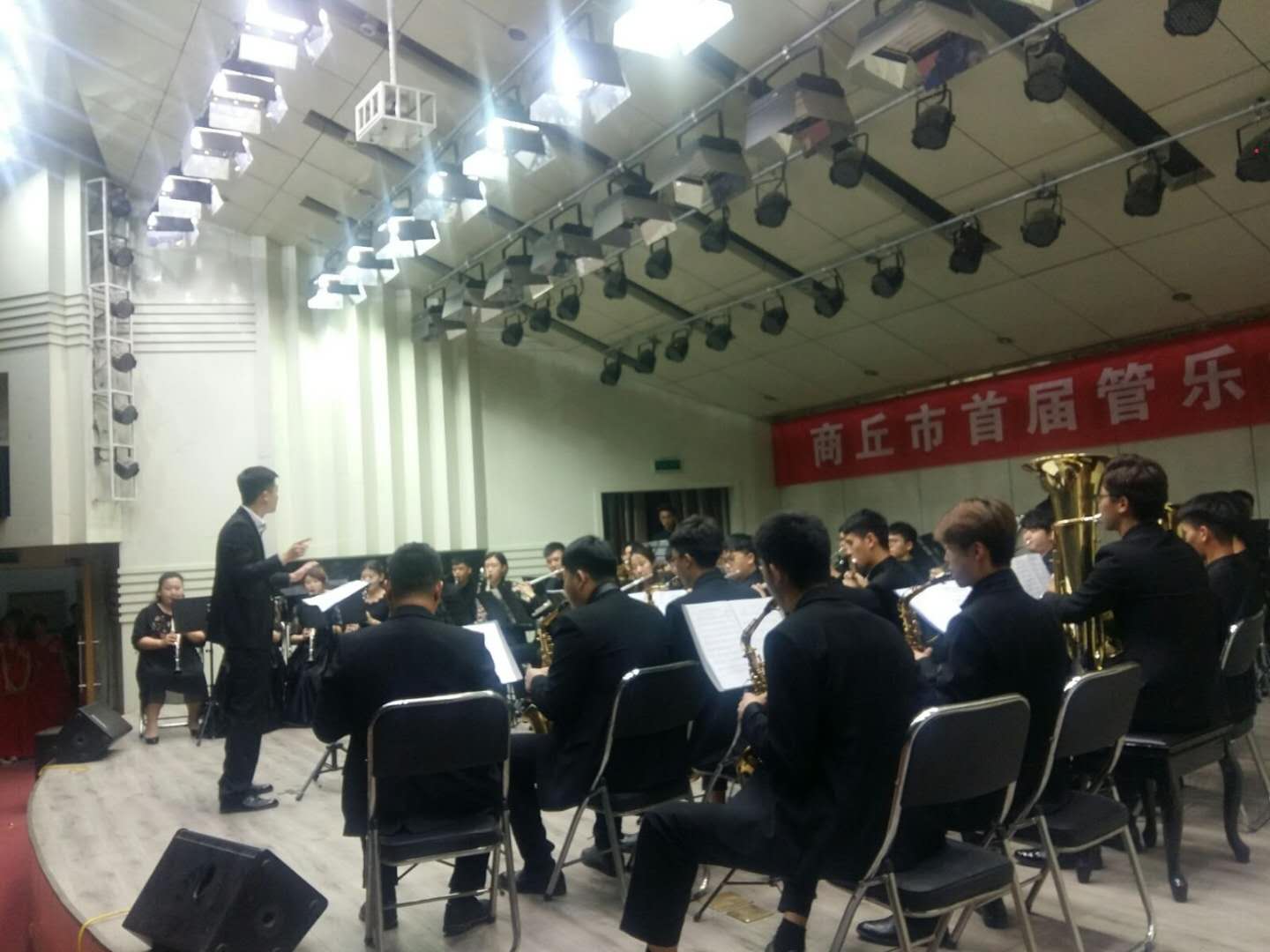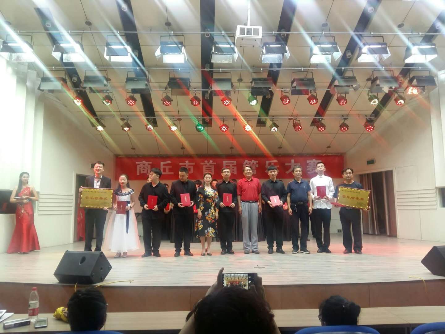 商丘市音乐家协会主席施少红、副主席周闽海、武景阳;商丘市文化馆副馆长刘明远;公司领导班子;商丘市管乐学会相关领导;社会音乐界人士及公司部分师生观看了比赛。