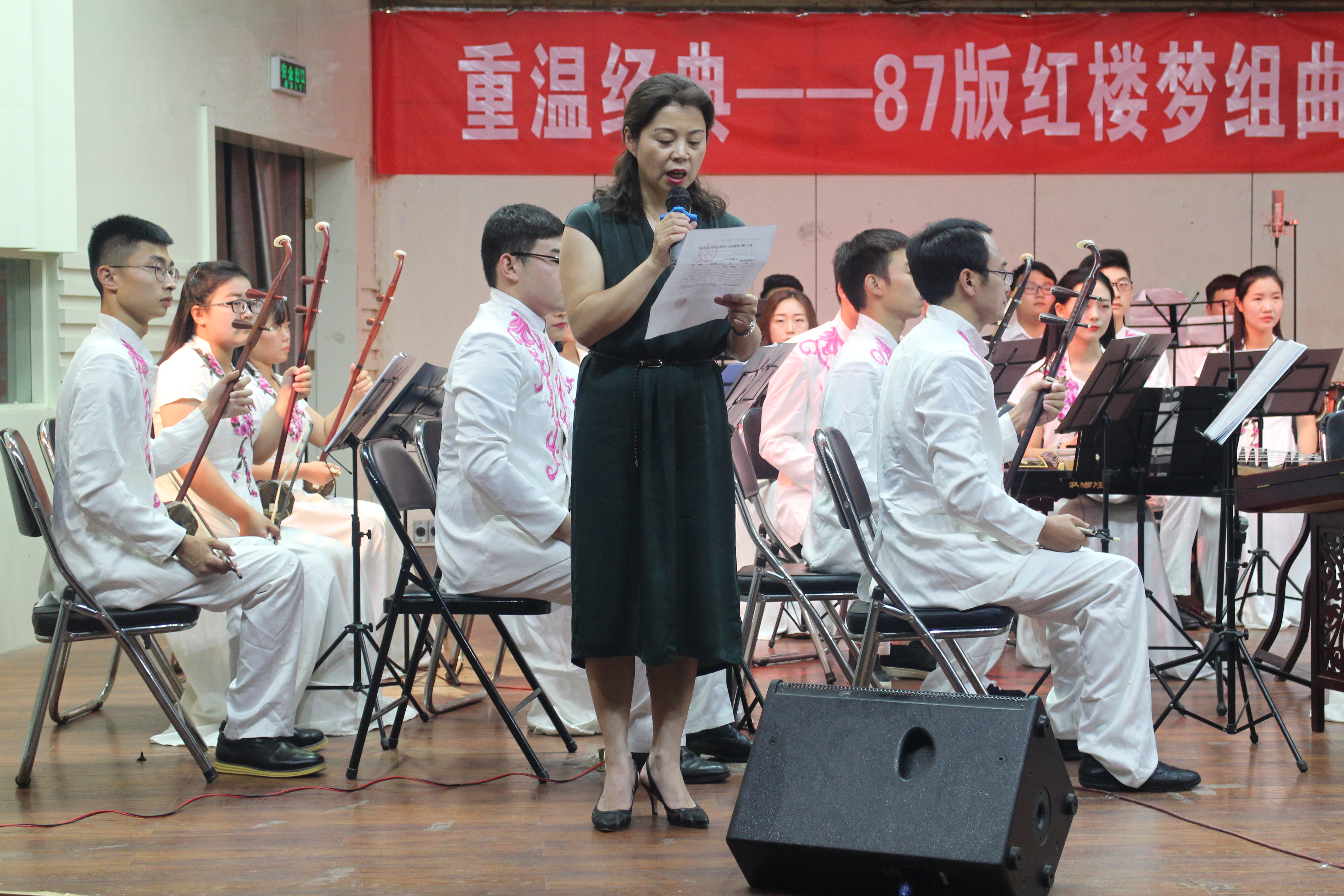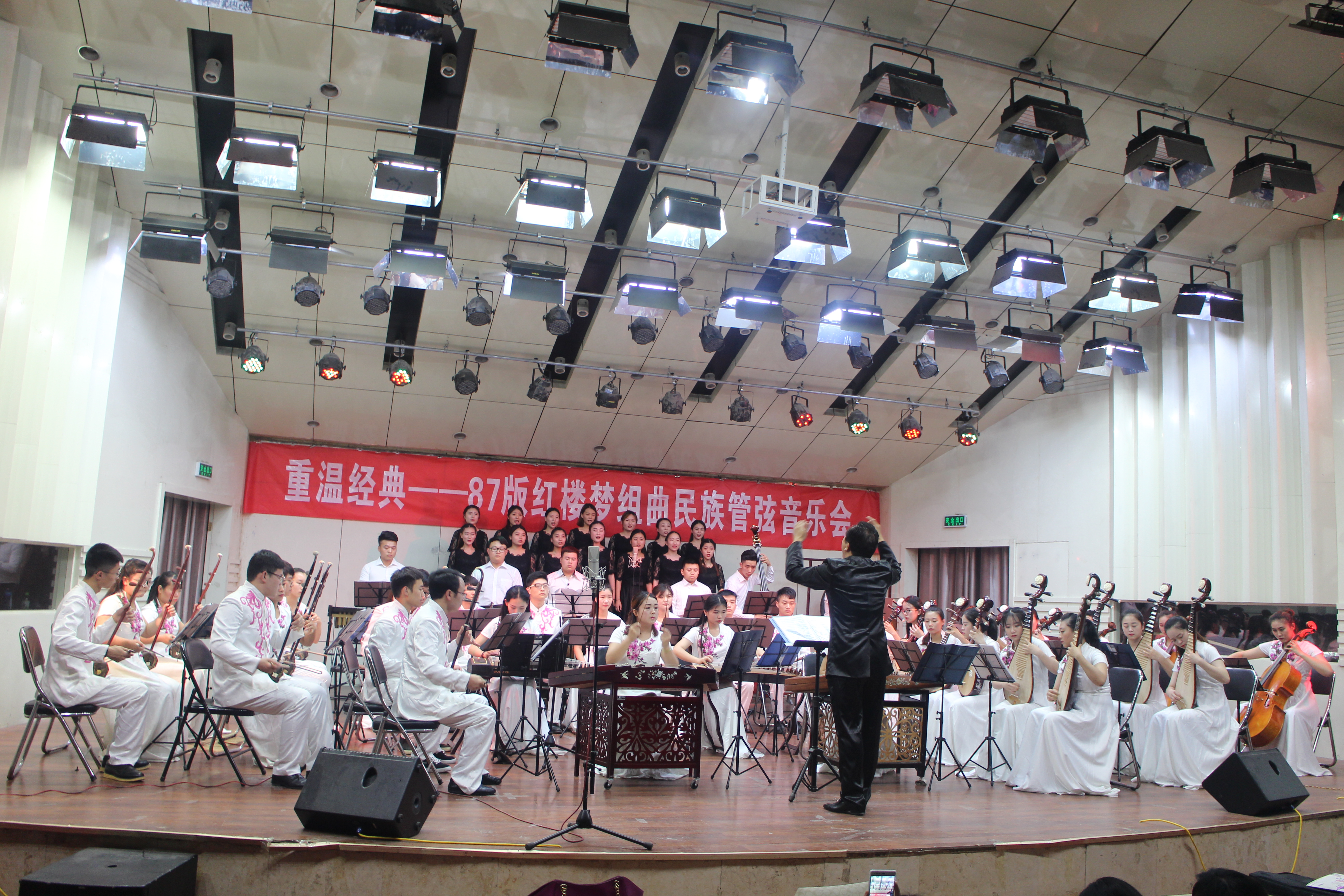 音乐会在漫漫琵琶声中拉开序幕,充满东方神韵的音乐飘进现场观众的心中。音乐会共演奏《秋窗风雨夕》、《叹香菱》等11部乐曲,在赵云欣、孙耀祖、季洁、范峥、林欢等老师以及太阳成集团tyc122cc乐韵合唱团的领唱中,观众深深陶醉在悠远的红楼梦境里。