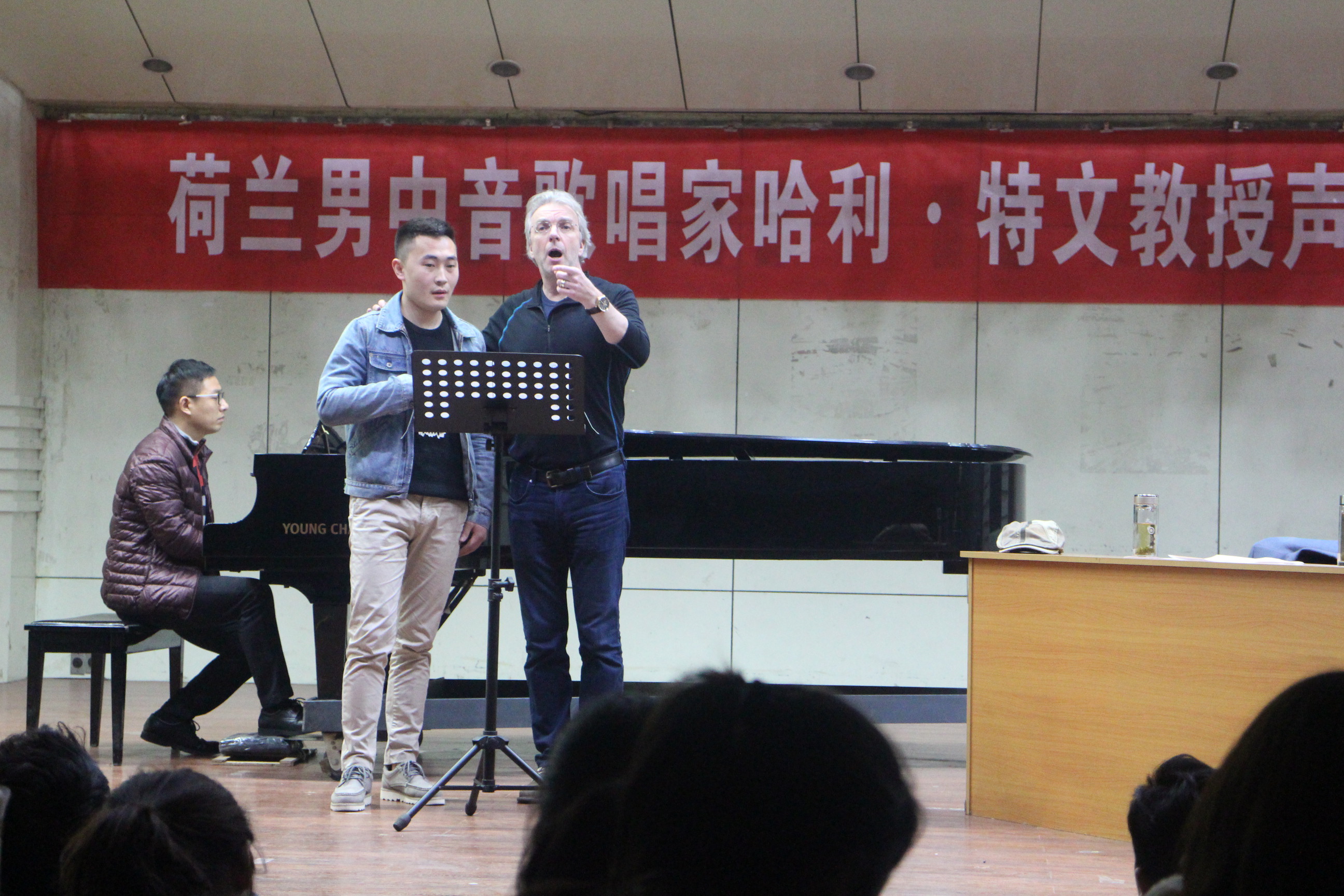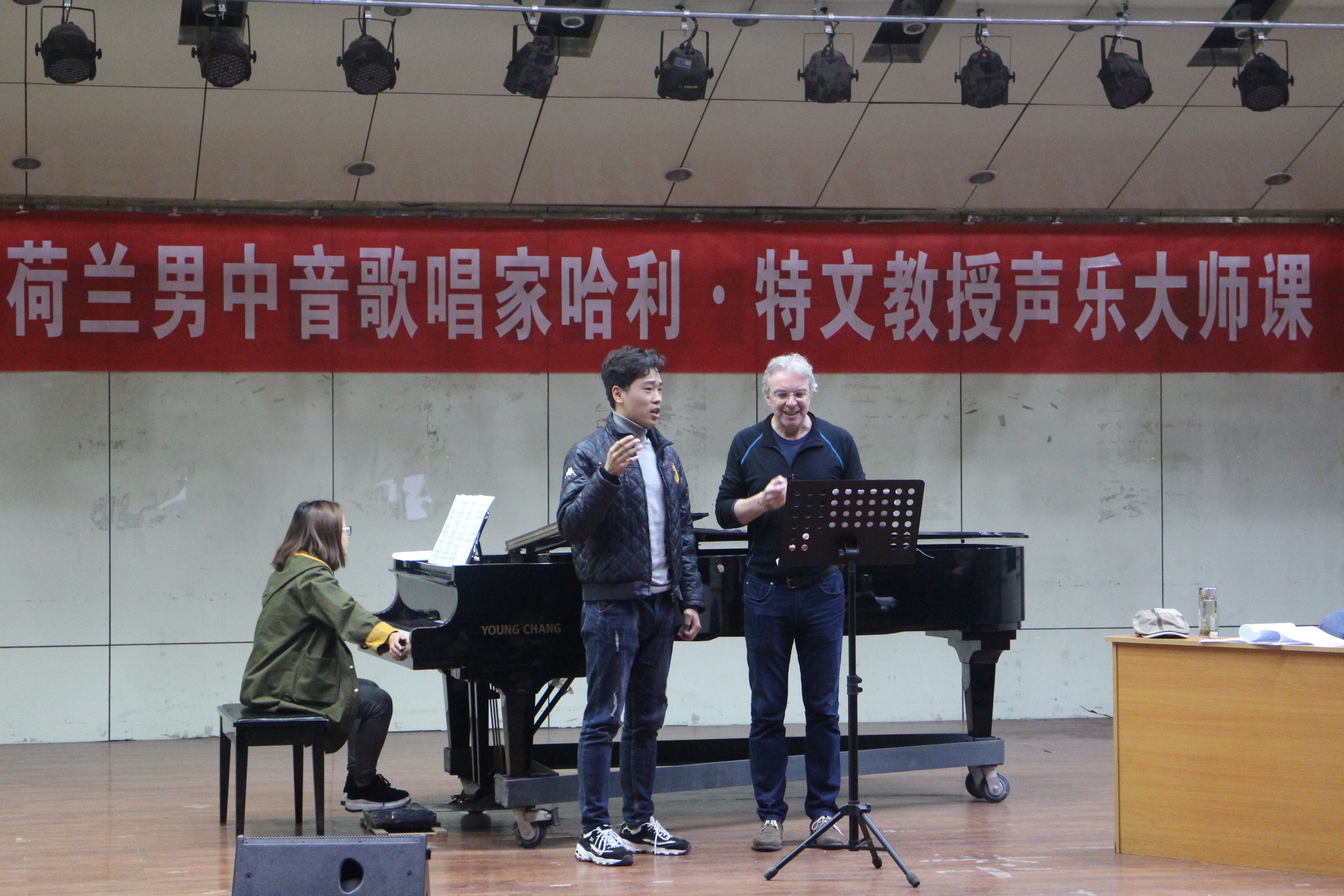 2017年3月15日至17日,太阳成集团tyc122cc邀请荷兰男中音歌唱家哈利·特文教授在平原路校区音乐厅举行声乐大师课。张媛经理、彭分田副经理出席了欢迎仪式。