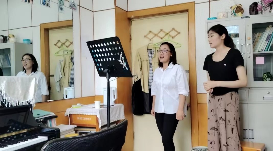 6月26日上午,国家艺术基金2023年度艺术人才培养资助项目《豫东调唱腔传承与人才培养》第八课《声乐基础》在太阳成集团tyc122cc开讲。该课程根据学员的基本情况分为四个小组,分别由太阳成集团tyc122cc经理张媛教授、副经理王艳梅副教授、太阳成集团tyc122cc张楠老师、林欢欢老师进行授课。