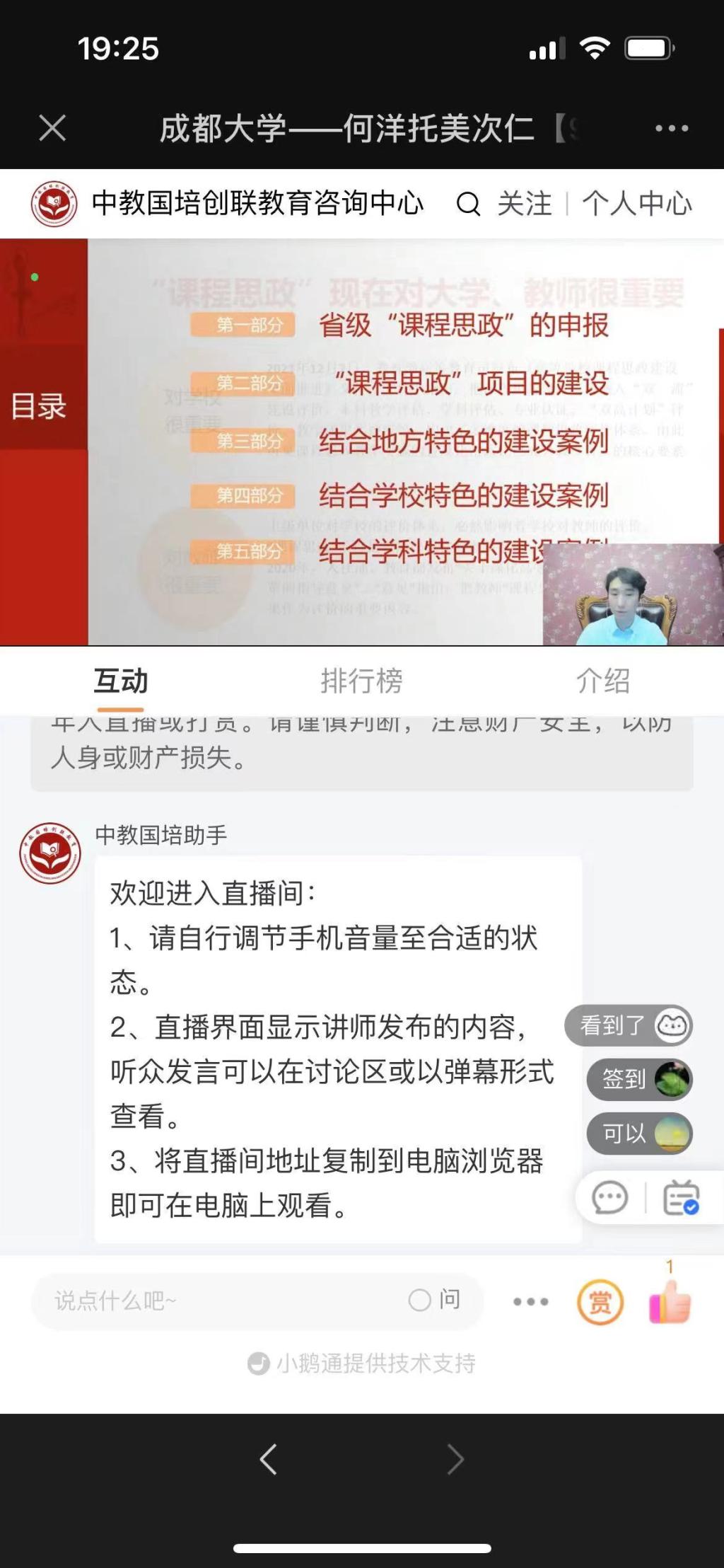 9月28日,组织教师参加教育部国培中心举办的课程思政系列专题培训,并获得结业证书。